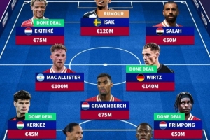体育资讯7月24日讯 利物浦刚刚官宣埃基蒂克,而多方消息确认,伊萨克已经告知纽卡希望离队,《转会市场》也据此预测了红军新赛季主力阵容。