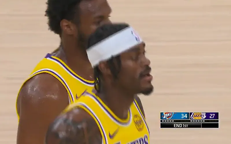 虎扑04月08日讯 NBA常规赛,湖人对阵雷霆的比赛正在进行中。